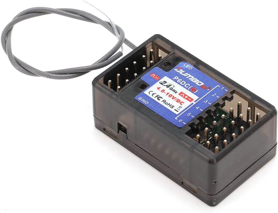 DUMBORC P6DCG 6Channel Receiver with LED System for DUMBORC X6/X6PM/X10P-350/DDF-350 Transmitter,Remote Control Receiver for Cars Truck Crawler 1.Integrated light group, avoid too many y lines lead to the wiring is very ugly. 2.It can realize the linkage simulation of steering, headlight, brake, reversing, atmosphere and emergency light. 3.Compatible with the market (gun control board control) remote control, it only needs to plug the 1-4 channel of the corresponding receiver with the connecting wire to the corresponding 1-4 channel of the DC receiver, then the same control function can be realized. 4.Pluggable extension cord can be selected to replace the battery or maintain the model installed on the lamp shell quickly and conveniently. 5.It supports the lamp group function in the mixed control mode. Some products on the market have not been able to achieve the normal function of the light group under the mixed control mode. Description: P6DCG RC Gyro receiver with 6 channels is compatible with X4 X5 X6 X6P/X10P/DDF transmitter. Specifications: Brand:DUMBORC Material: Componant Material Color:Black Channel:6CH Function:Gyro Voltage Range:4.8-10V Product size:35*21*14mm Product weight:9g Original Version: X6DCG