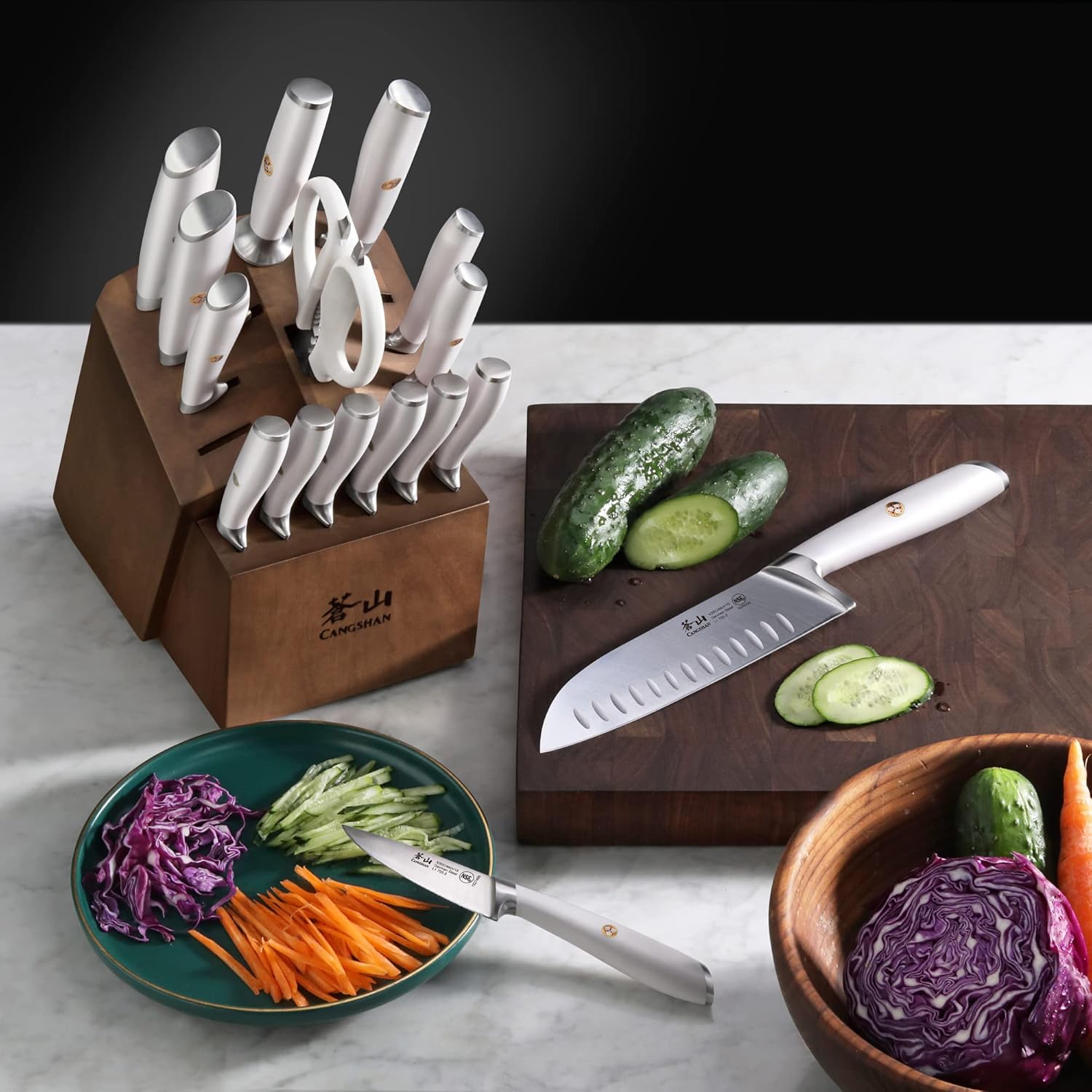 The L & L1 Series speak to the purity of minimalism, focusing on the elemental beauty of forward-thinking aesthetics and practical functionality. A sleek and modern knife whose exceptional qualities shine out, complimenting and elevating the skills of the chef. Beautifully robust yet slim, the handcrafted Cangshan Eco-friendly bamboo block stands proudly displaying its curiously balanced asymmetrical shape. Rich, unique bamboo grain texture compliments and enhances the distinct design of the securely housed knife set.