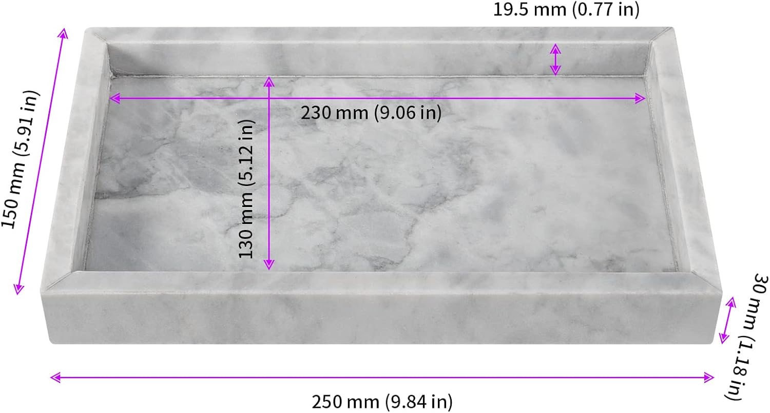 PRODUCT DETAILS: Material: Marble Size: 9.8 x 5.9 x 1.2 Inches(L x W x H) Color: Cloud Grey PACKAGE LISTS: 1 x Natural Marble Tray