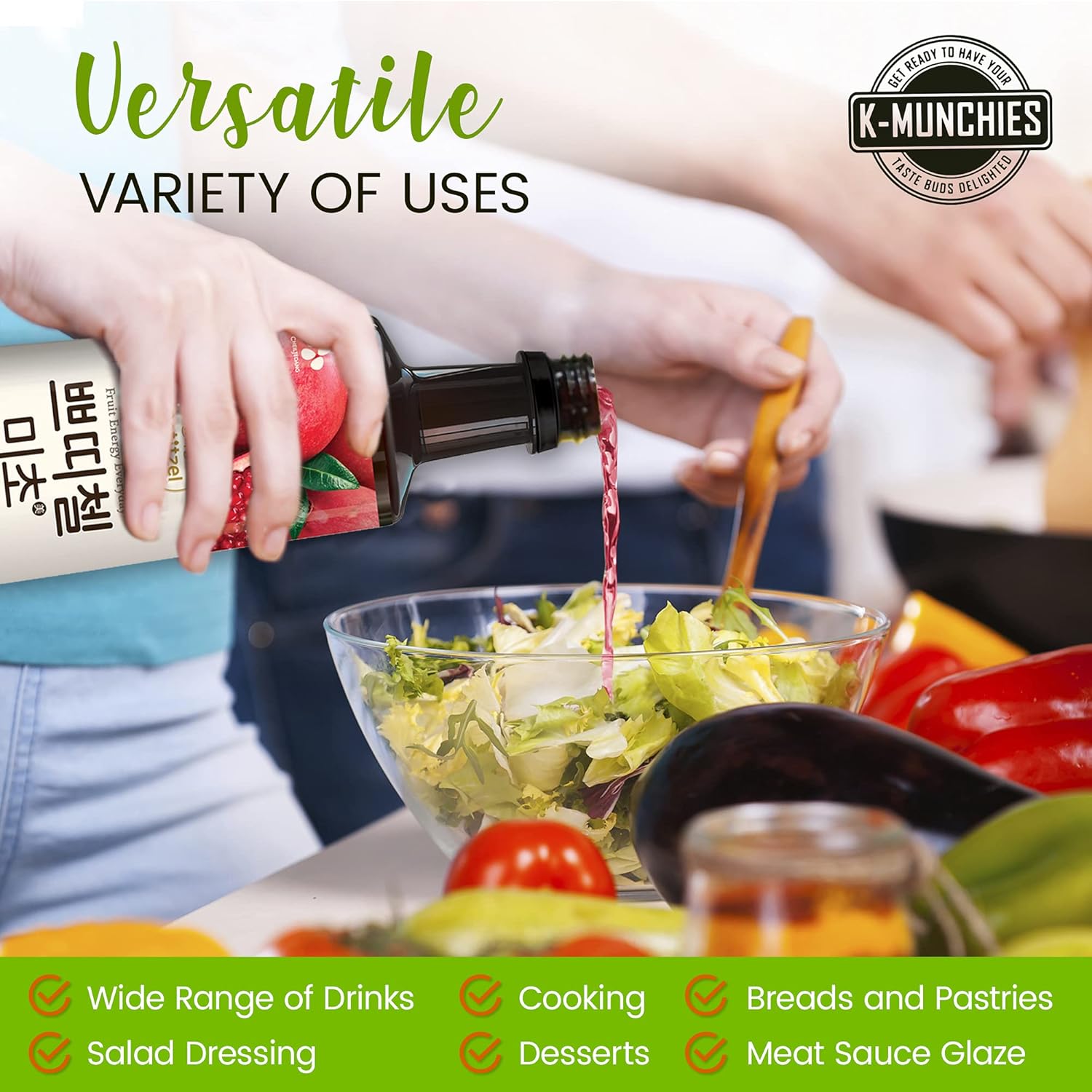 KOREAN VINEGAR FOR DRINKSDiscover the new hit beverage in Korea!CheilJedang Petitzel Micho Fruit Vinegar concentrate creates beverages that are a great alternative to sugary drinks. This vinegar has been fermented naturally and contains essential vitamins, minerals, and probiotics. Unlike other artificial juices, this fruit vinegar only contains natural ingredients like premium fruit juice with no added preservatives, coloring, or sweeteners! Mix it up for your own drink concoctions - cocktails of course included too!Each pack contains:2 x 900 mL Fruit Vinegar for Drink Flavor: Pomegranate