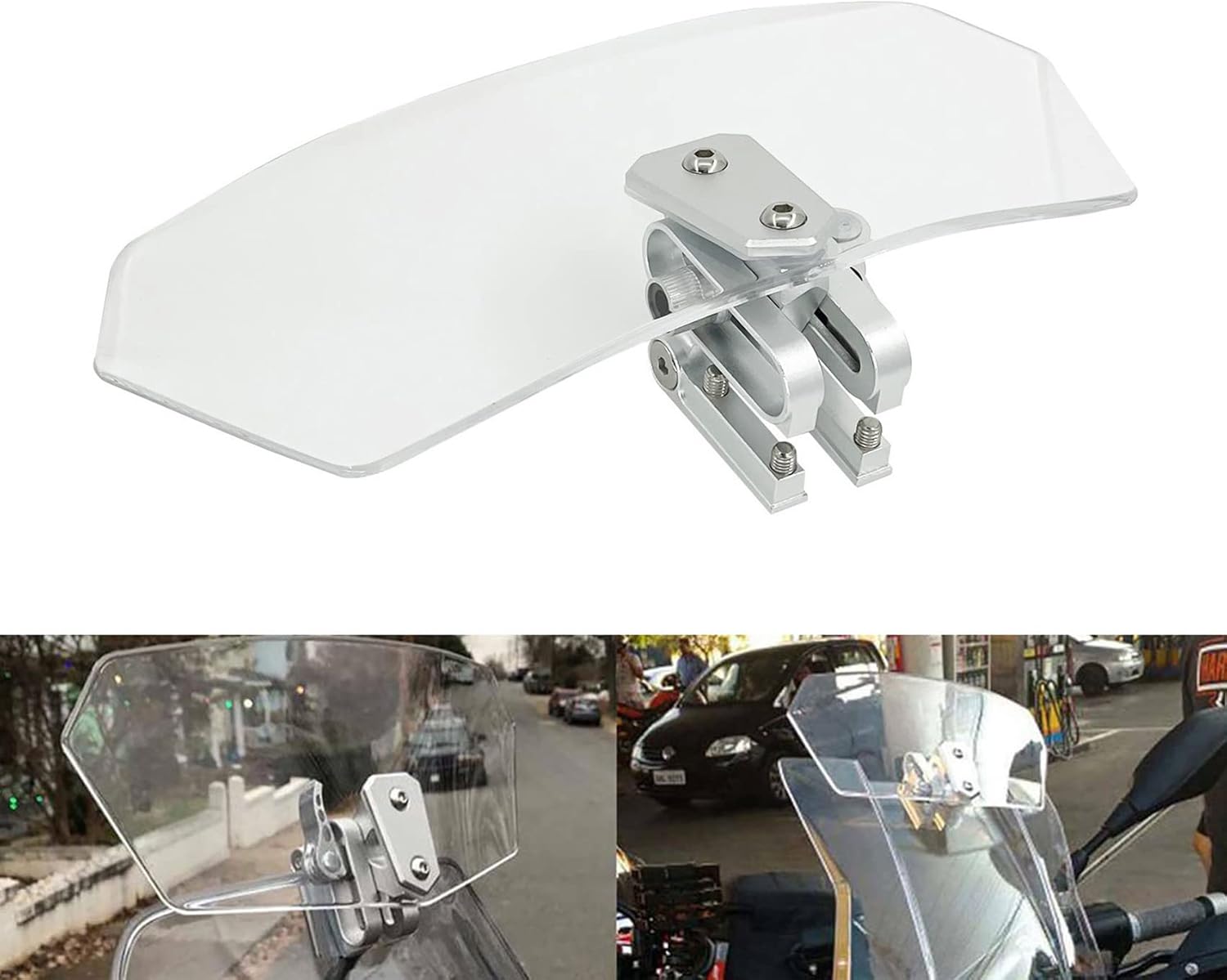 FEATURES: Condition:Aftermarket 100% Brand New Easy to clamp on when you hit the highway, easy off when you leave the pavement, or for around town. Size :27.5cm ×13cm Color :Clear Material : Aluminum and ABS Plastic Significant benefit to comfort Over-center clamping mechanism, it won't come off until you take it off Angle is the same as original windscreen Fitment : Majority of motorcycles and scooters